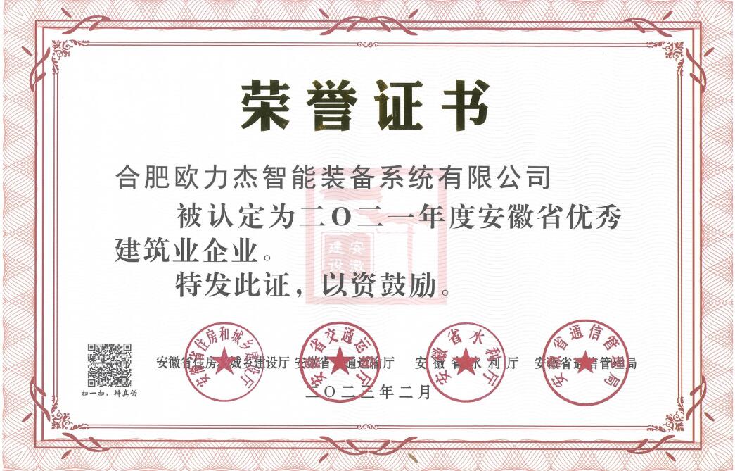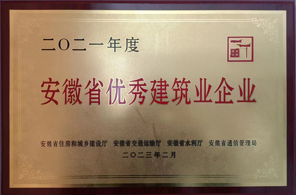 热烈祝贺HOME-恒盛娱乐平台「强注册平台,更安心娱乐」 - hs28 荣获2021年度安徽省优秀建筑业企业。该荣誉由安徽省住房和建设厅、安徽省交通运输厅、安徽省水利厅、安徽省通讯管理局四部门于2023年2月统一评选认定。