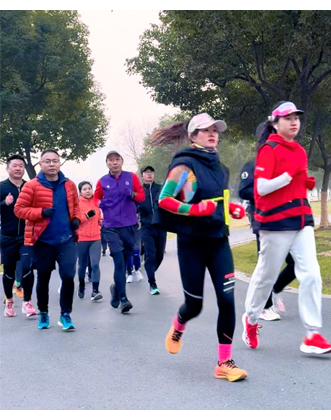 上午7:40,伴随着华米“跃我”跑团团长蒯家银的一声“开跑”的号令,新年跑活动正式拉开序幕。蒯团长拥有多年的跑步经验,累计参加马拉松赛事超150场,去年累计里程超5000公里,担任国内多场赛事的官方配速员,具有非常专业的跑步知识与经验。蒯团长根据大家的状态,不断的调整跑步的速度、节奏,并不时的提醒大家的安全细节。团跑的同事们感到了前所未有的轻松、畅快。活动进行得如火如荼,整个蜀西湖仿佛都被热情和活力所包围。