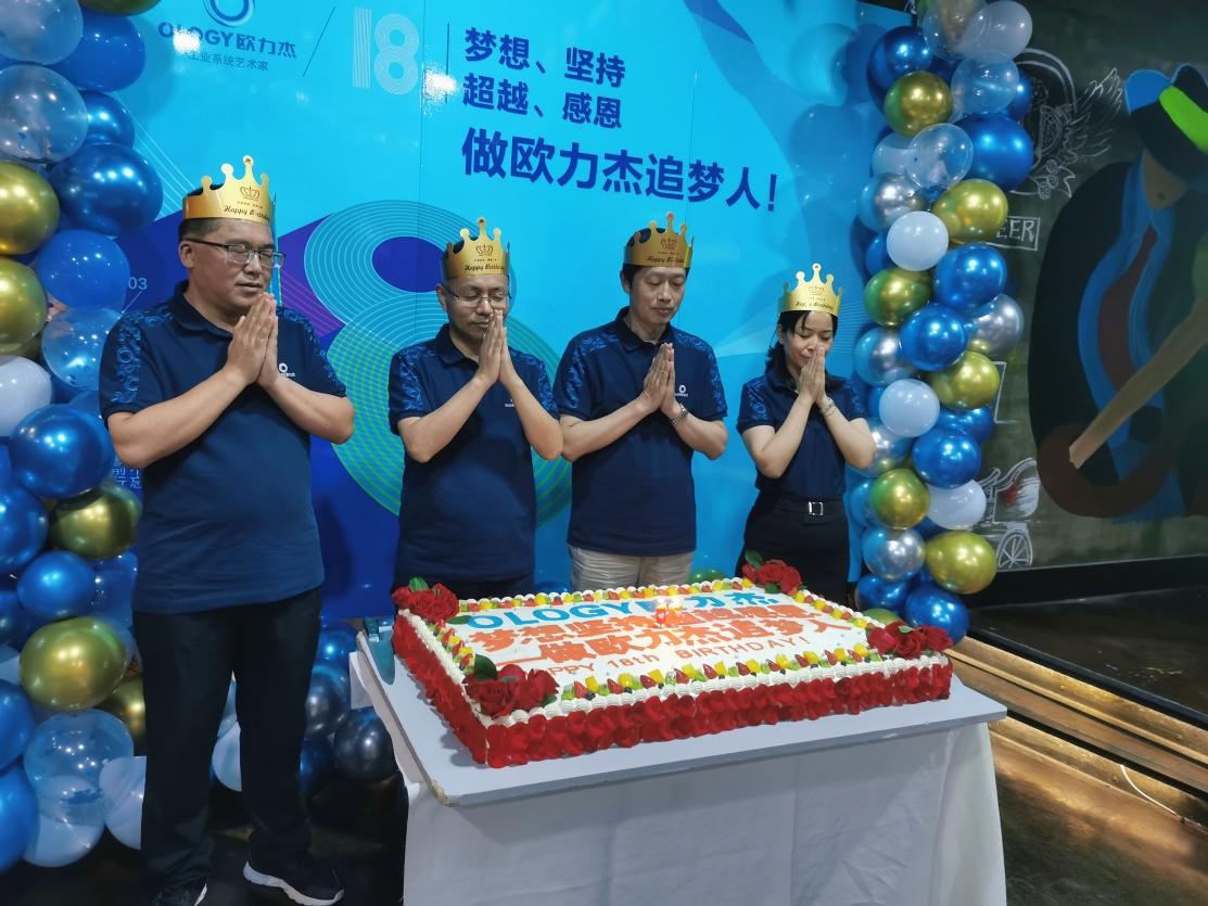 19:18分,陈总邀请副总经理许萍、总工程师徐英好、工程中心总监刘兴华等上台,共同完成恒盛娱乐18岁生日许愿、吹烛、切分蛋糕等活动,并将这份喜悦、祝福传递至每一位恒盛娱乐人。