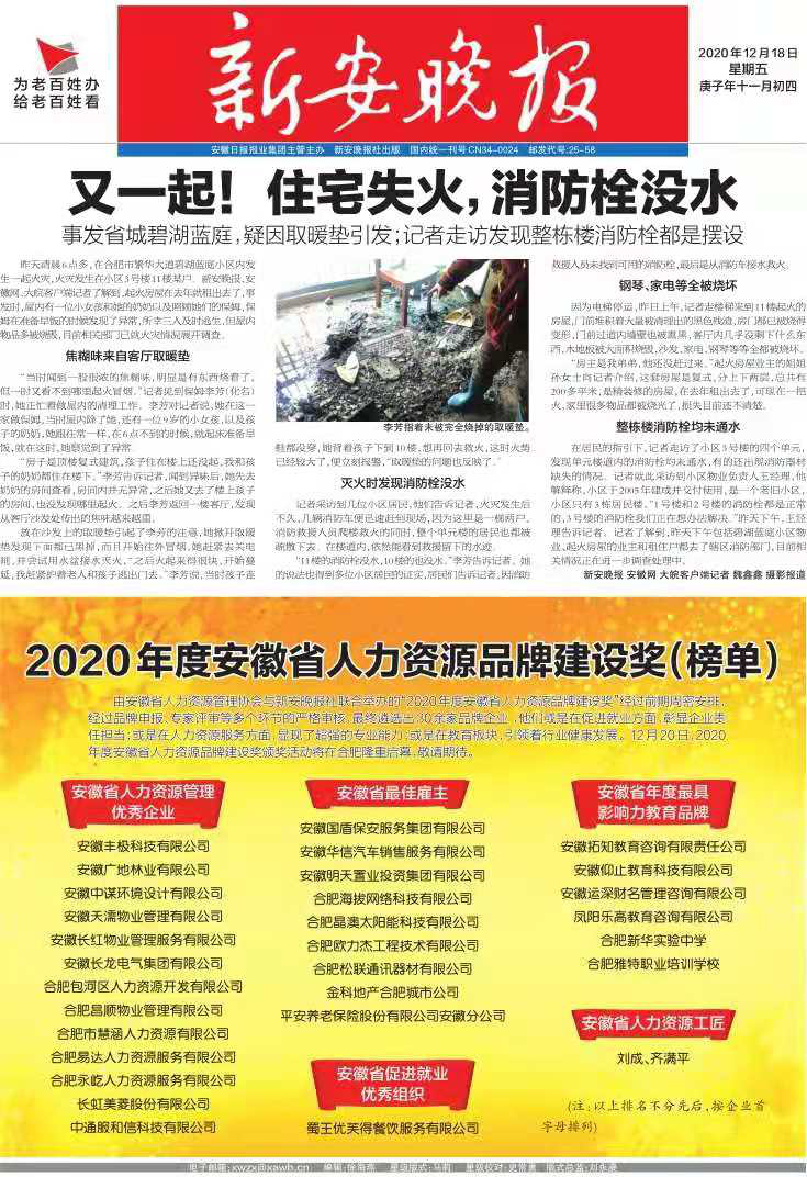 12月20日下午,在由安徽省人力资源管理协会携手新安晚报联合主办的“2020年度安徽省人力资源品牌建设奖”颁奖盛典上,HOME-恒盛娱乐平台「强注册平台,更安心娱乐」 - hs28 荣获“2020年度安徽省最佳雇主”及“安徽省人力资源工匠”双项荣誉称号。