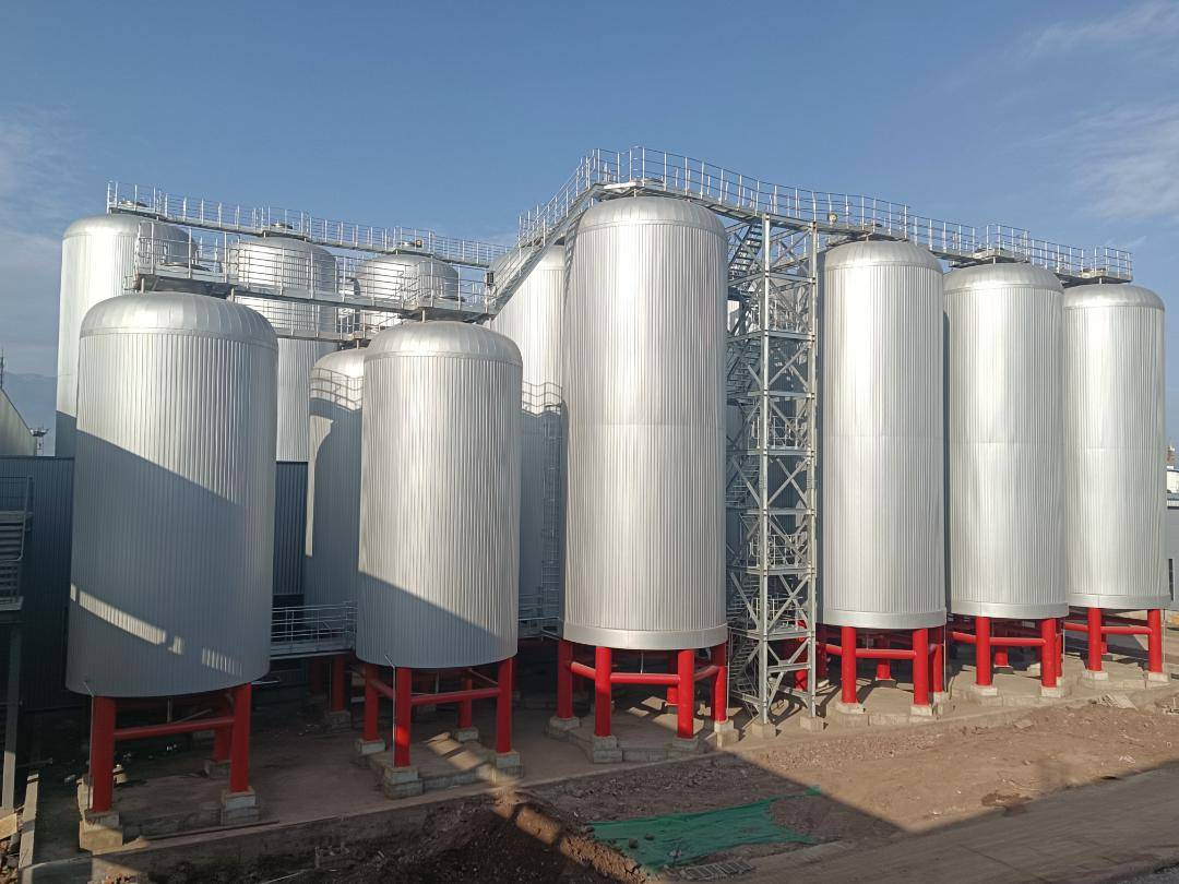 步入项目现场,一座崭新工厂映入眼帘,其外观融合了时尚与大气,尽显现代工业美学。高耸的啤酒发酵罐与清酒罐巍然屹立,彰显着工业生产的磅礴力量。这些设施与简约而不失精致的蓝色幕墙巧妙搭配,共同构成了啤酒生产工厂的独特视觉语言,成为西昌这座城市一道引人注目的新风景线,为这片土地增添了新的地标性建筑。