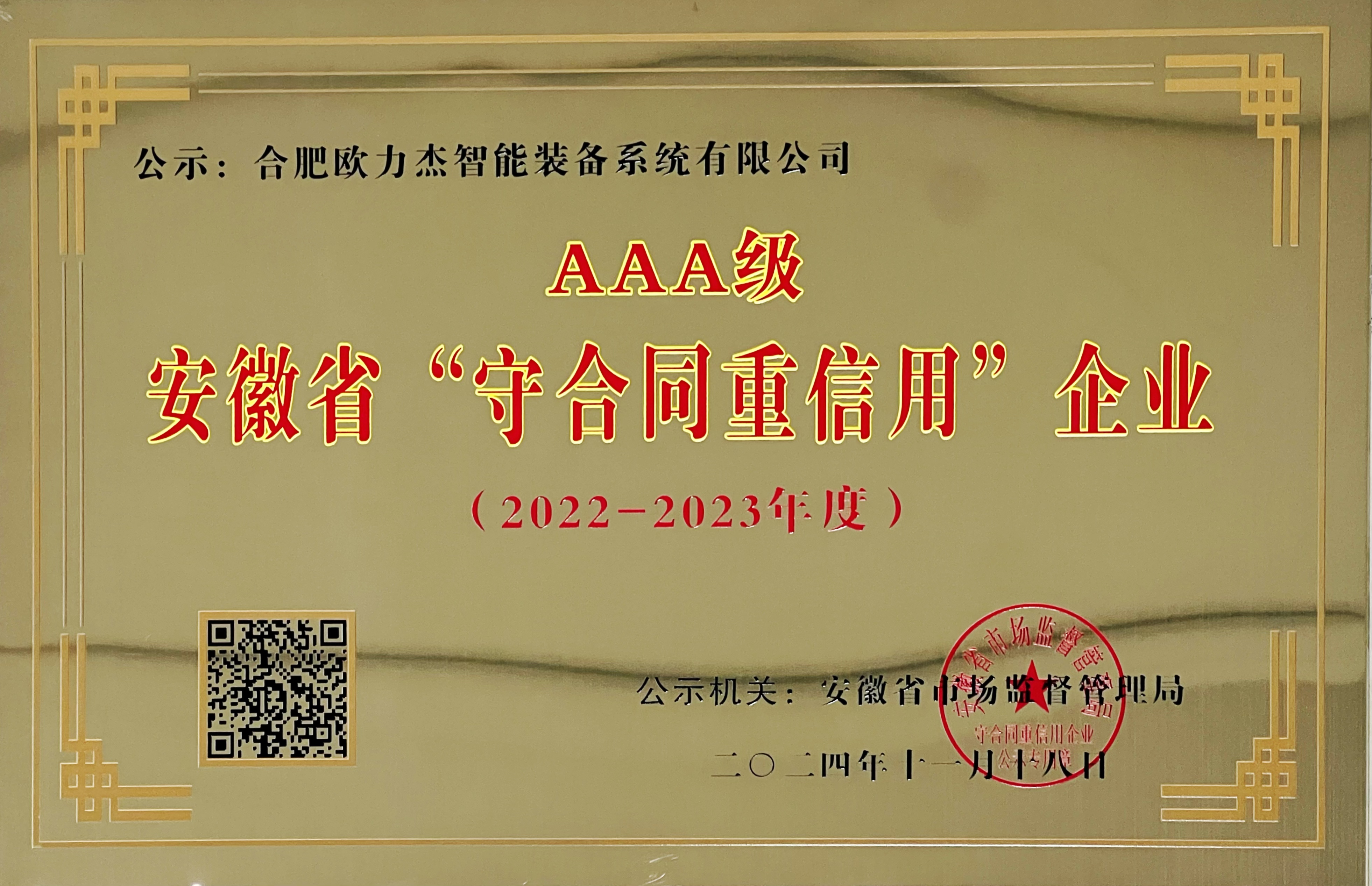 近日,安徽省市场监督管理局发布2022-2023年度“安徽省守合同重信用”AAA级企业名单,HOME-恒盛娱乐平台「强注册平台,更安心娱乐」 - hs28 成功入选。