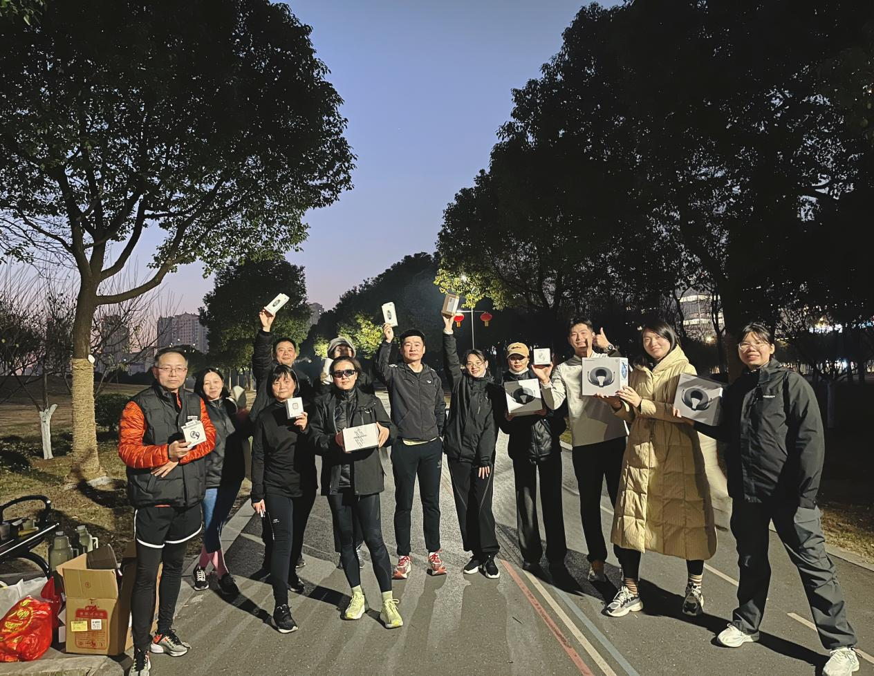 12月31日下午15:30,公司近三十位运动员集合前往跨年跑场地,合肥蜀西湖公园内人声鼎沸,热闹非凡。参加跨年跑的同事们身着运动装备,脸上洋溢着兴奋与期待。十分钟集体热身后,下午16点跨年跑活动正式开始。