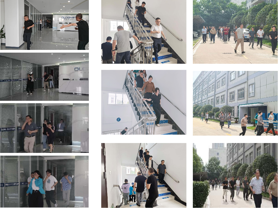 疏散引导组迅速到位,指引员工按照预定逃生路线,弯腰低姿、捂住口鼻,快速撤离至安全集合点。整个过程紧张有序、分工明确,全体参演人员在规定时间内完成疏散,充分检验了应急预案的实用性和可操作性。